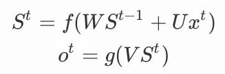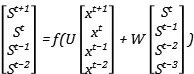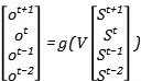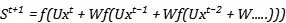我们可以上图写出前向传播的公式,使用f作为隐藏单元的激活函数,g作为输出单元的激活函数,为了简化问题,不使用偏置,也不在单元中使用阈值,一个圆圈只代表一个神经元,以St为例: