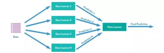 我们有N个预测器,每个都进行预测并返回一个最终值。之后,元学习者或 Blender 将这些预测作为输入并做出最终预测。