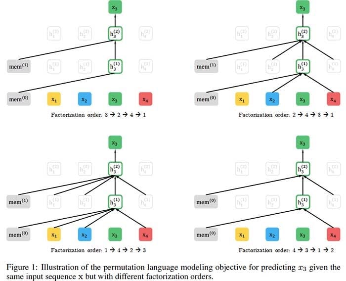 凭借对双向上下文进行建模的能力,基于自动回归语言建模的预训练方法可以实现基于BERT的预训练的去噪自动编码实现更好的性能。然而,依赖于使用掩码破坏输入,BERT忽略了屏蔽位置之间的依赖性并且受到预训练 – 微调差异的影响。根据这些优点和缺点,我们提出了XLNet,一种广义自回归预训练方法,它(1)通过最大化分解阶的所有排列的预期可能性来学习双向上下文,并且(2)由于其自回归,克服了BERT的局限性。公式。此外,XLNet将最先进的自回归模型Transformer-XL的创意整合到预训练中。根据经验,XLNet在20项任务上优于BERT,