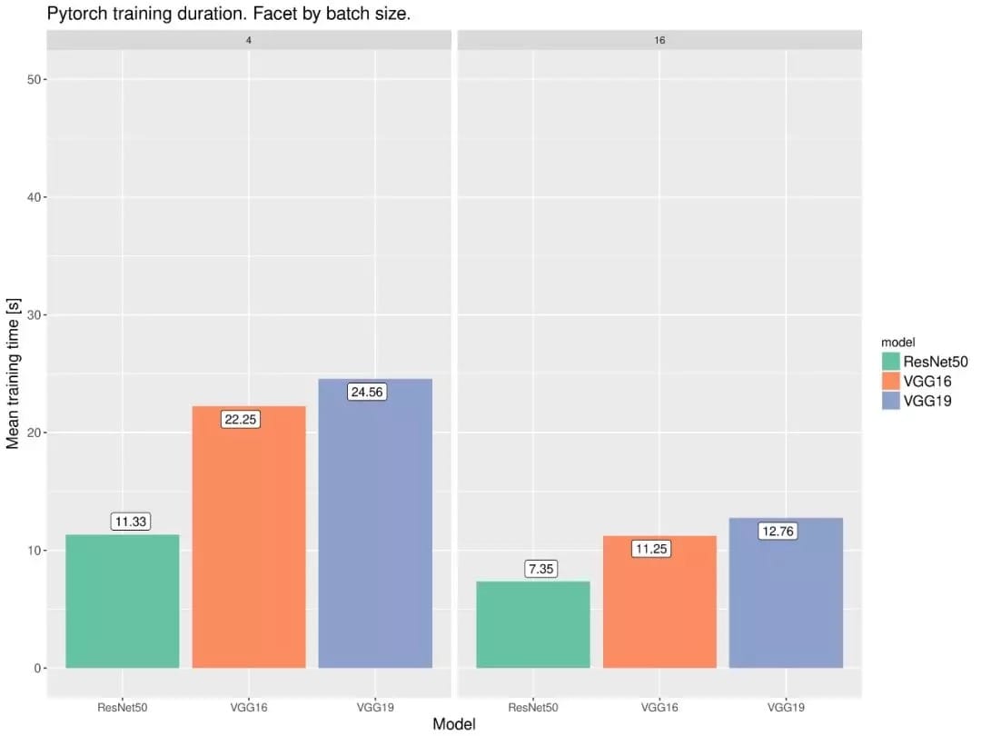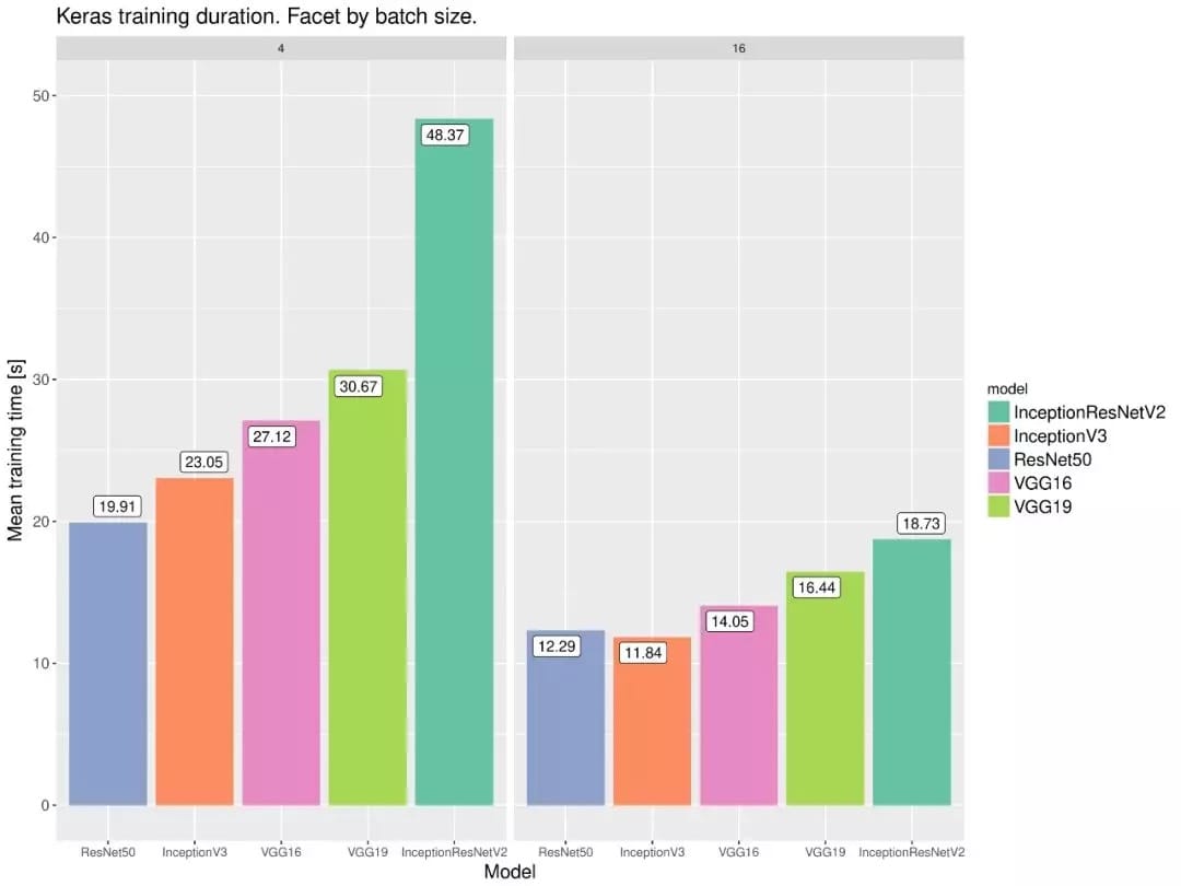 下面两张同样展示了不同模型在 PyTorch 和 Keras 框架下的性能,这两份 18 年的测试都表明 PyTorch 的速度要比 Keras 快那么一点点。