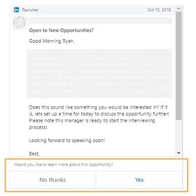 例如,当LinkedIn开始扩展它的InMail消息服务时,它决定引入两个回复选项。当招聘人员向您伸出援手时,LinkedIn会提供两个回复,“是”或“不,谢谢。”这是一个简单的解决方案,不仅通过让用户更快地改善用户体验,而且还向LinkedIn提供高度结构化的用户反馈意见可以用来训练其ML模型。随着时间的推移,LinkedIn推出了更多支持ML的产品,例如Smart Reply,它们受益于相同的产品内反馈机制。