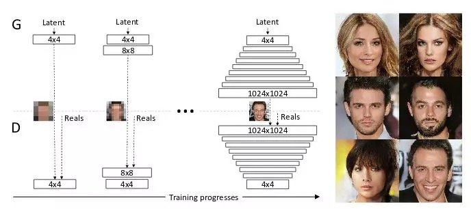 为了生成更好的更高分辨率的图像,ProgressiveGAN [24] 建议首先训练 4×4 像素的生成器和判别器,然后逐渐增加额外的层,使输出分辨率加倍至 1024×1024。这种方法允许模型首先学习粗糙结构,然后专注于稍后重新定义细节,而不是必须同时处理不同规模的所有细节。