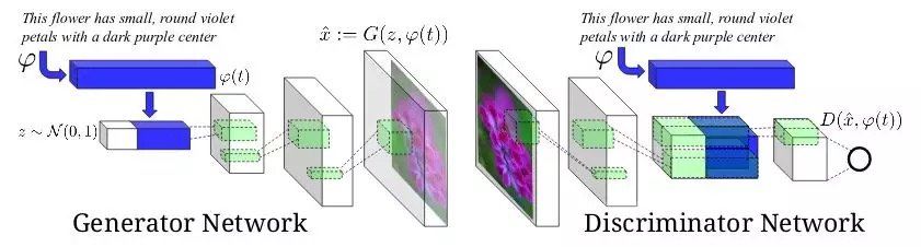 GAN-INT-CLS [18] 是使用 GAN 从文本描述生成图像的第一次尝试,这个想法类似于将条件向量与噪声向量连接起来的条件 GAN,但是使用文本句子的嵌入而不是类标签或属性的区别。