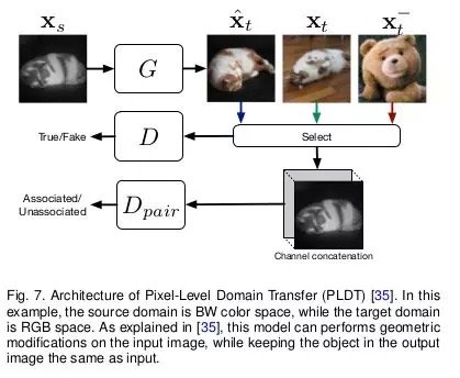 PLDT 的体系结构如下图所示,给定来自源域的输入图像 Xs,其目标域中的真实图像 Xt,目标域中的无关图像 Xt̃ ,以及生成器 G 将 Xs 传输到图像传输到图像Xt中。Dpair 的损失可表示为: