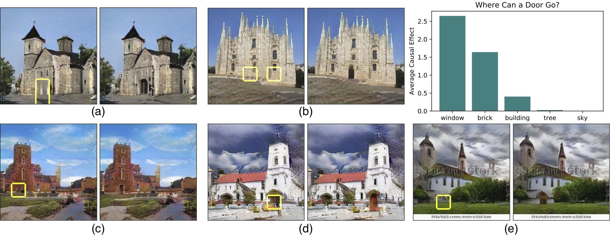 将这种粒度级别放入神经元中允许通过强制激活和去激活(消融)这些对象的相应单元来编辑现有图像(例如,添加或移除图像中所示的树)。