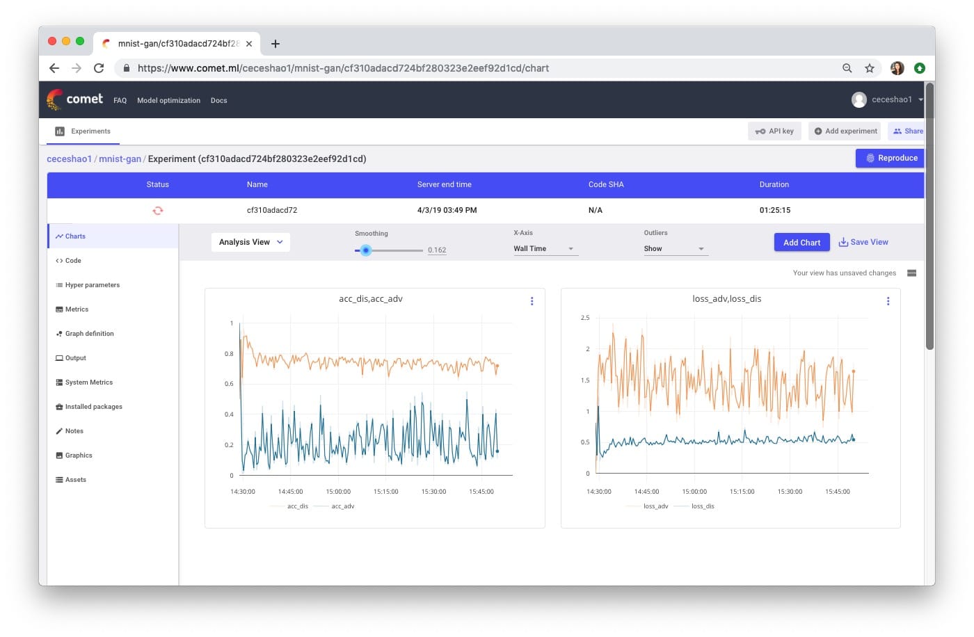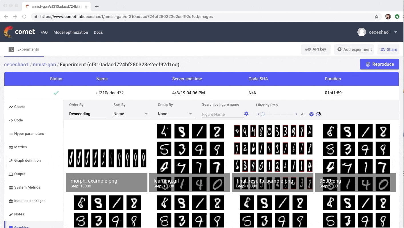 一旦我们的GAN模型完成训练,我们甚至可以在Comet的图形选项卡中查看我们报告的输出作为电影(只需按下播放按钮!)。