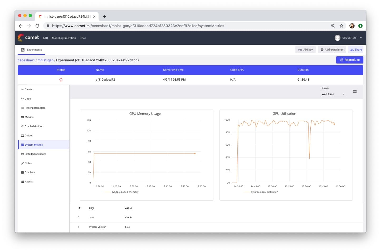 您还需要确认您的培训过程实际上是否正在使用GPU,您可以在Comet System Metrics选项卡中查看。