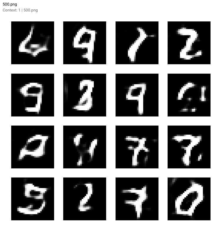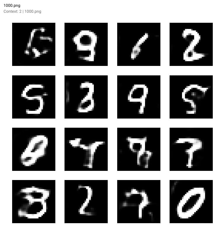 随着培训的进行和我们模型的损失下降,生成的数字变得更加清晰。查看生成的输出: