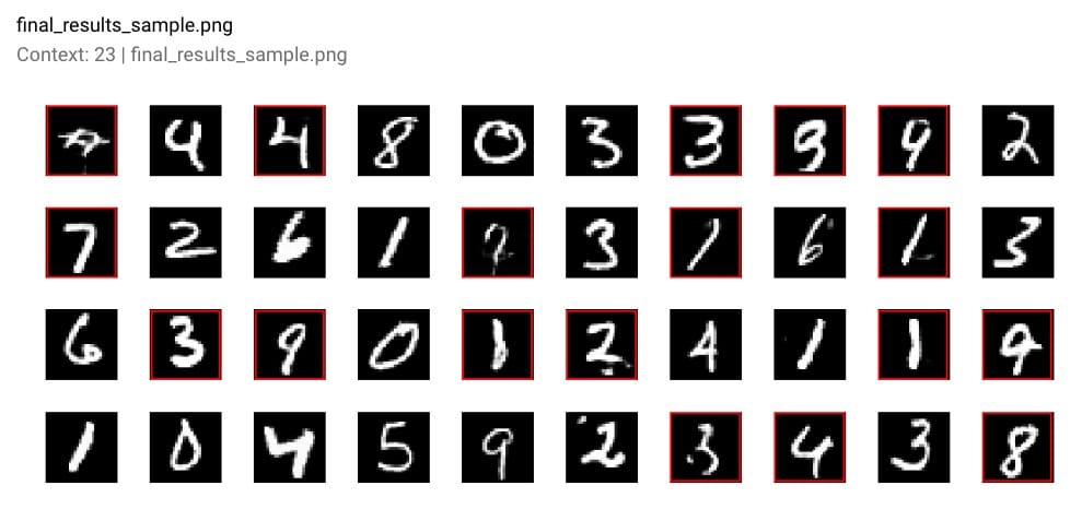 最后在**步骤10,000 - **您可以在下面的红色框中看到GAN生成数字的一些样本