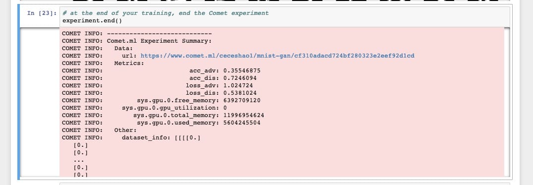 要完成实验,请确保运行experiment.end()以查看有关模型和GPU使用情况的一些摘要统计信息。