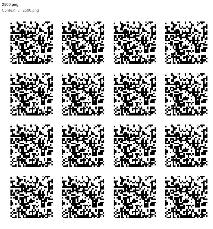 您可以看到Generator模型如何从这个模糊的灰色输出(参见下面的0.png)开始,它看起来并不像我们期望的手写数字。