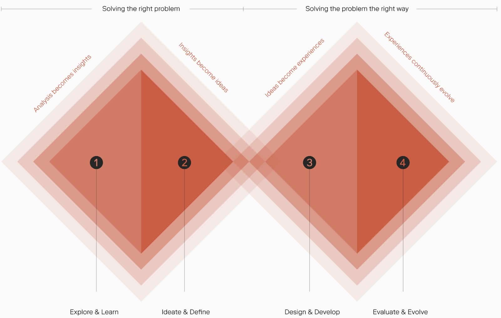 我们以一种在问题解决过程开始时观察和发现用户需求的方式来进行产品开发。这是我们使用称为“双钻石框架”的东西捕获的端到端流程的一部分。