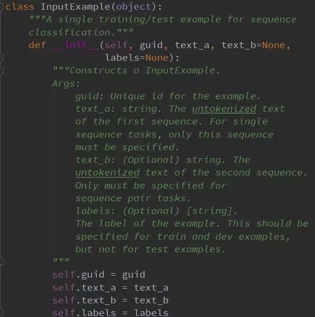 我们在类InputExample 准备数据: