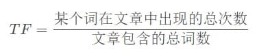 • TF Term **Frequency :某个词在当前文本中出现的频率,频率高的词语或者是重要的词(如:“自然语言处理”)或者是常用词(如:“我”、“是”、“的”等);