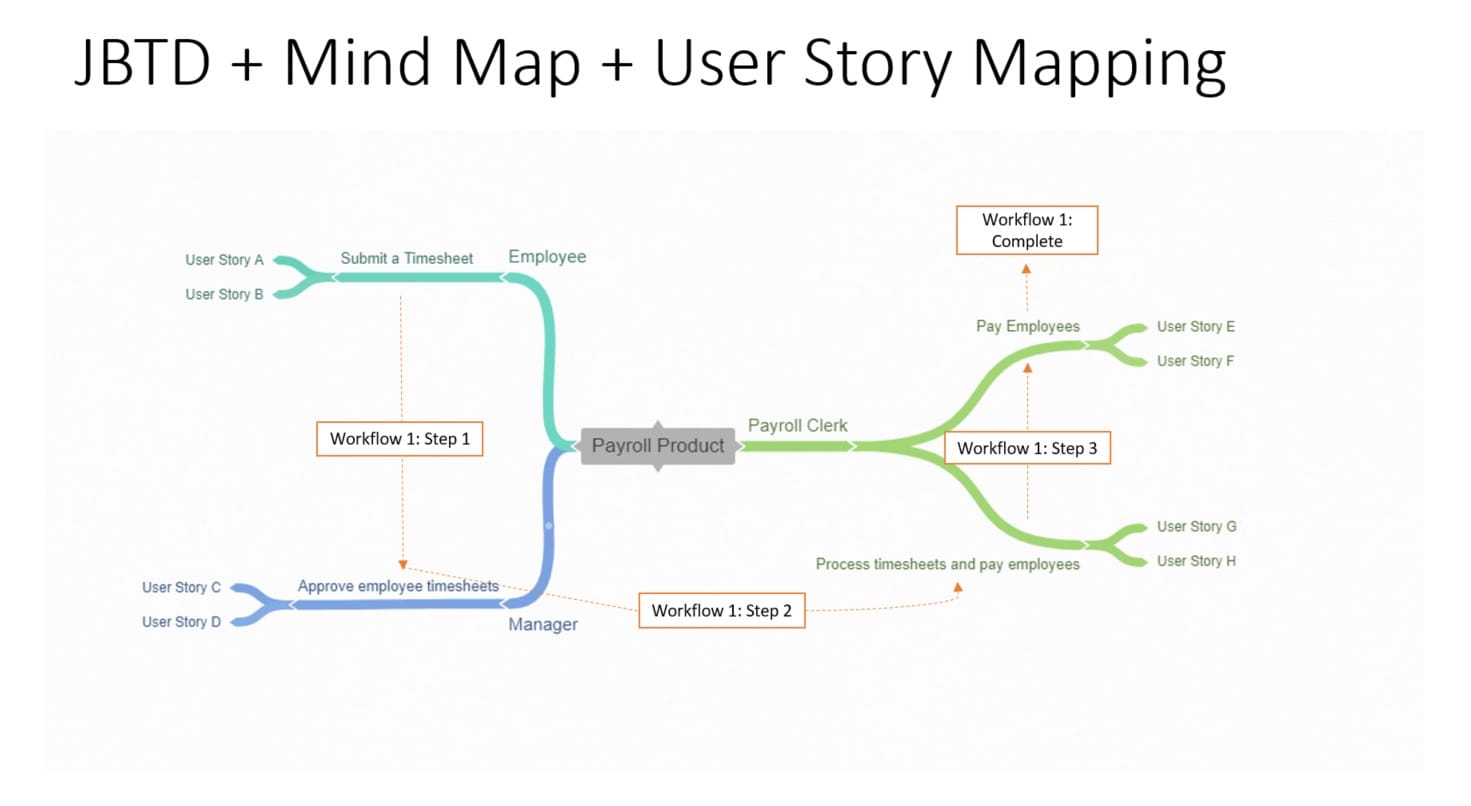 用户故事映射比思维导图更进一步,并且应该作为思维导图的扩展。它需要完成个人工作并发现痛点,并潜入以了解更多细节。用户故事映射的目标是将客户反馈转换为我们团队可以理解的上下文。