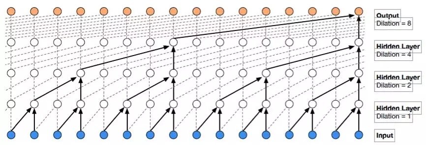 WaveNet 是受到 PixelRNN 的启发,将自回归模型应用于时域波形生成的成功尝试。利用 WaveNet 生成的语音,在音质上大大超越了之前的参数合成效果,甚至合成的某些句子,能够到达以假乱真的水平,引起了巨大的轰动。其中,所采用的带洞卷积(dilated convolution)大大提升了感受野,以满足对高采样率的音频时域信号建模的要求。WaveNet 的优点非常明显,但由于其利用前 N-1 个样本预测第 N 个样本,所以效率非常低,这也是 WaveNet 的一个明显缺点。后来提出的 Parallel WaveNet 和 ClariNet,都是为了解决这个问题,思路是利用神经网络提炼技术,用预先训练好的 WaveNet 模型(teacher)来训练可并行计算的 IAF 模型(student),从而实现实时合成,同时保持近乎自然语音的高音质。