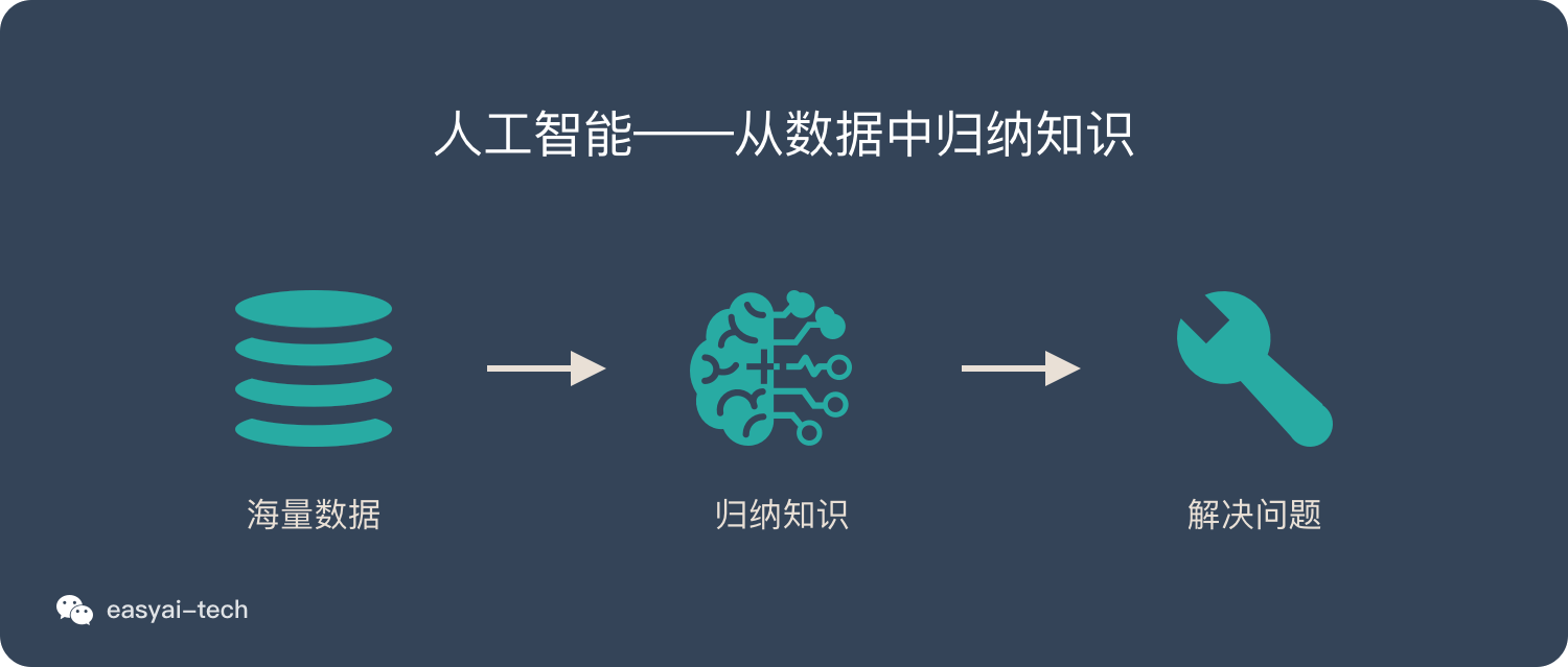 机器从「特定的」大量数据中总结规律,归纳出某些「特定的知识」,然后将这种「知识」应用到现实场景中去解决实际问题。
