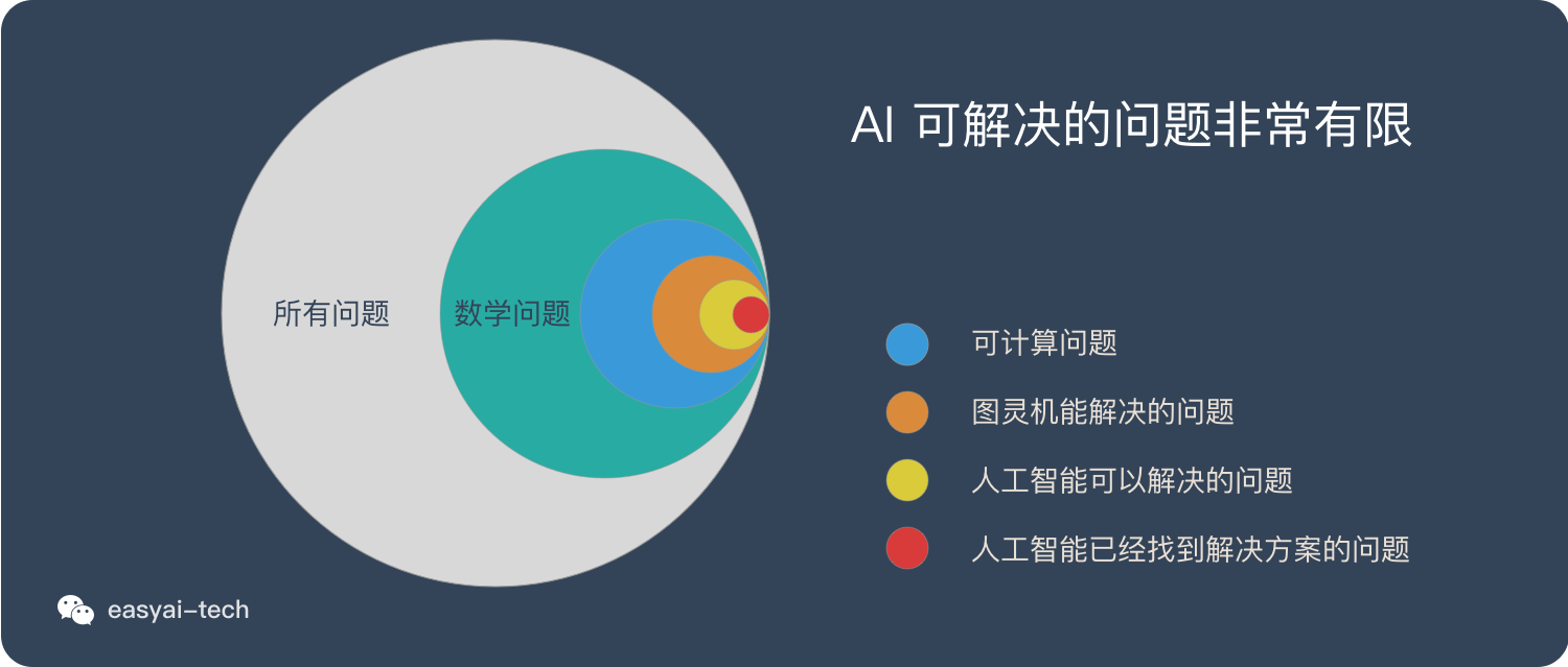 通过上面的3个问题,图灵已经划出了界限,**这个界限不但适用于今天的 AI ,也适用于未来的 AI **。