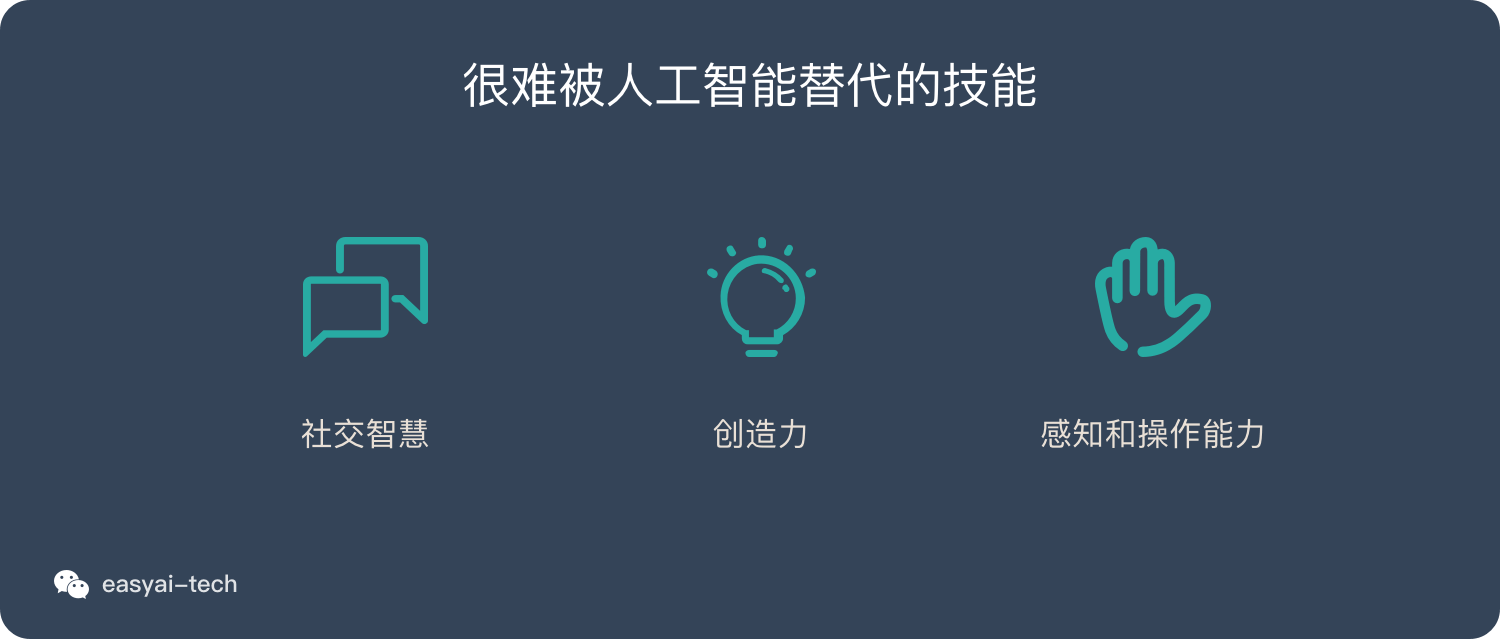 科学家总结出了3个人工智能很难替代的技能: - 社交智慧(洞察力、谈判技巧、同理心…)