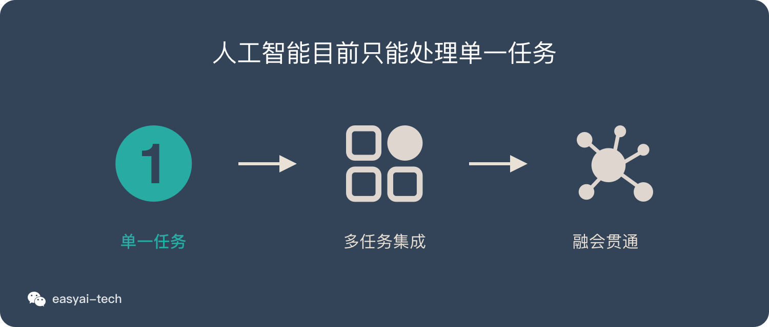 实际情况是:现在的人工智还处在单一任务的阶段。