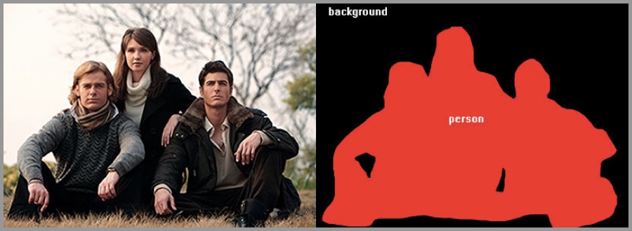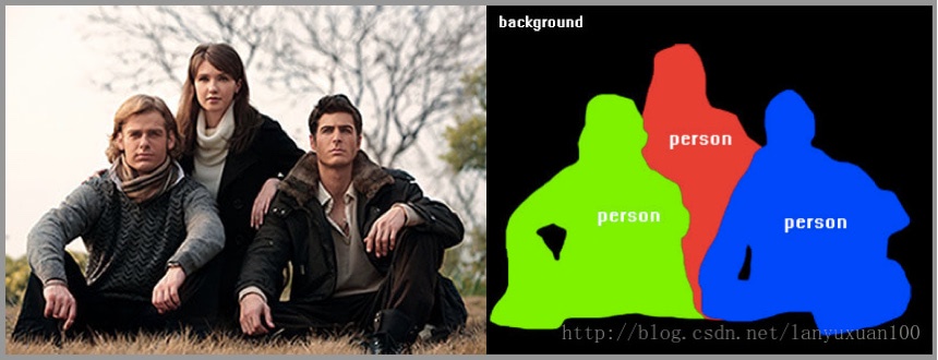 如下图,除了识别人、道路、汽车、树木等之外,我们还必须确定每个物体的边界。