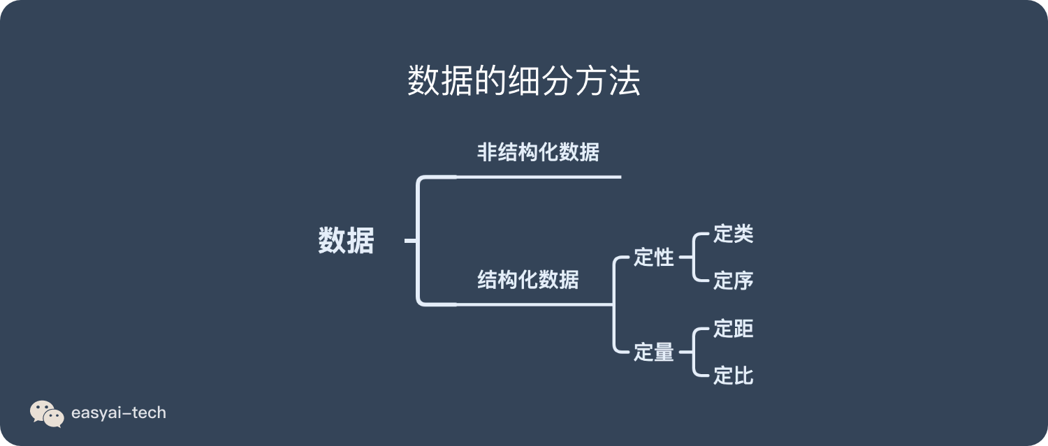 Section titled “第一步:数据分类”当我们拿到数据后,第一步就是把这些数据进行分类,然后用不同方法来处理不同类型的数据。