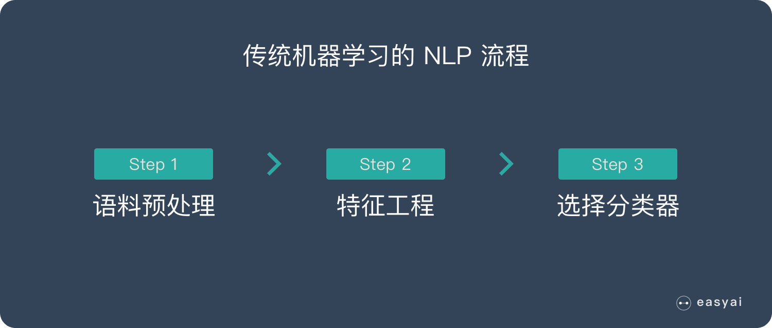 Section titled “NLP 的 2 种途径、3 个核心步骤”NLP 可以使用传统的机器学习方法来处理,也可以使用深度学习的方法来处理。2 种不同的途径也对应着不同的处理步骤。详情如下:
