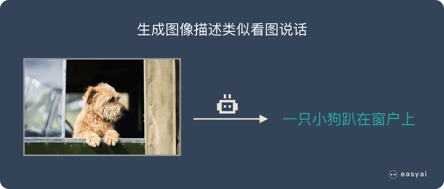 生成图像描述:类似看图说话,给一张图,能够描述出图片中的内容。这个往往是 RNN 和 CNN 的结合。
