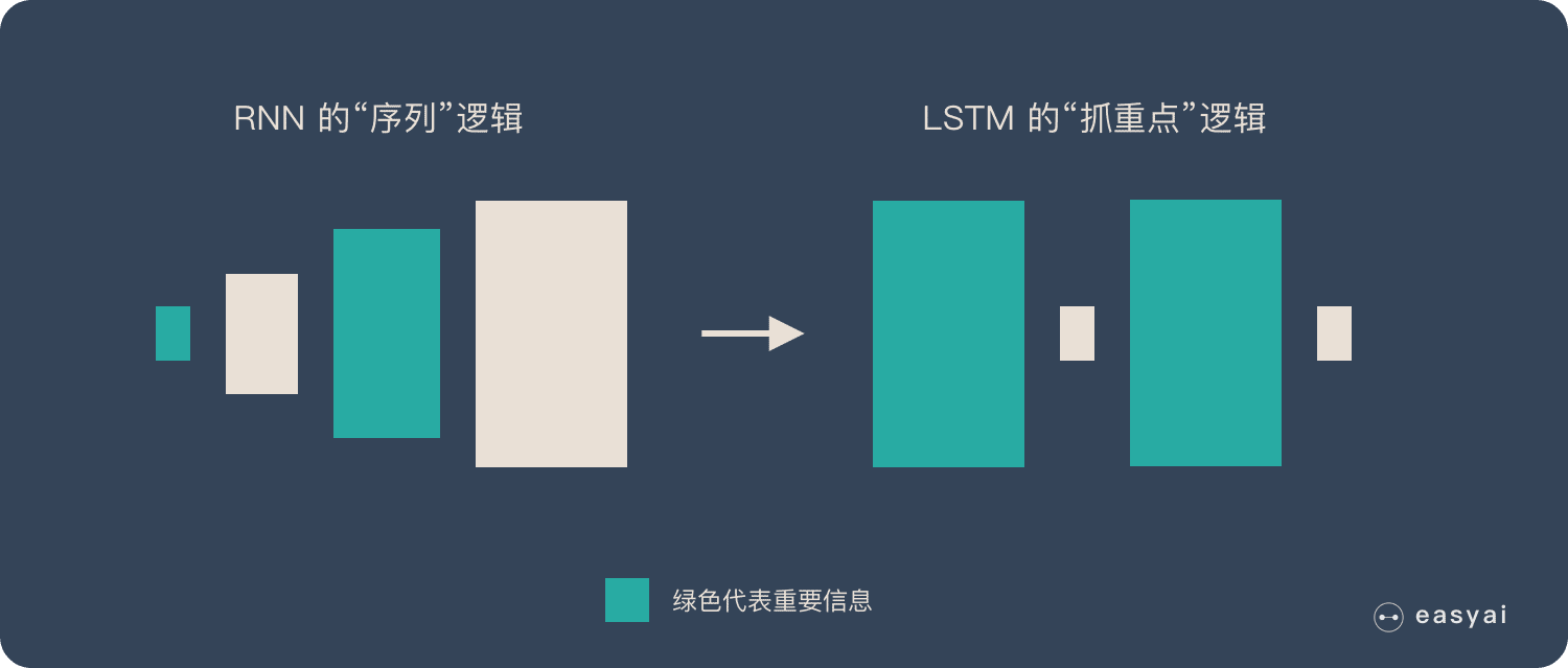 LSTM 做的最大的改变就是打破了这个死板的逻辑,而改用了一套灵活了逻辑——只保留重要的信息。