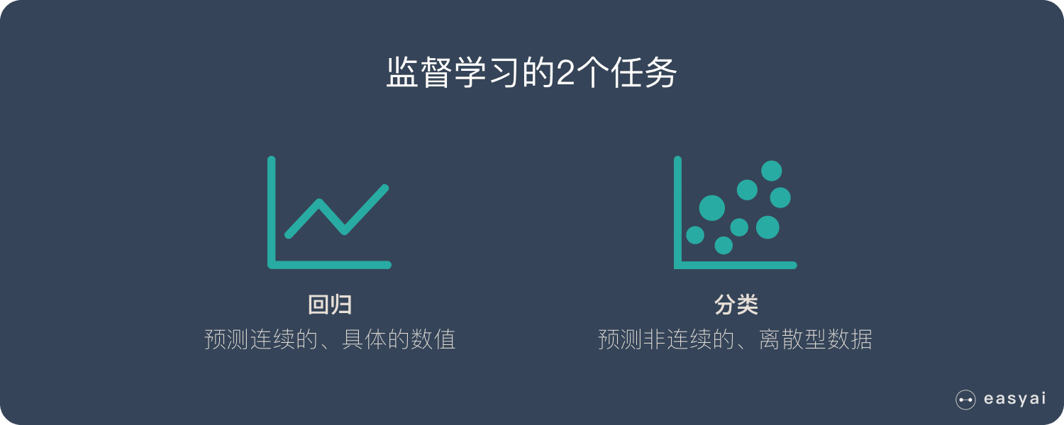 Section titled “监督学习的2个任务:回归、分类”监督学习有2个主要的任务: